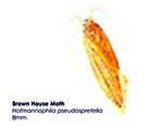 Brown House Moths attack a wide variety of materials including cereals, cereal products, textiles, leather and cork. The Brown House Moth tends to scavenge whilst the White Shouldered House Moth is generally found infesting food.